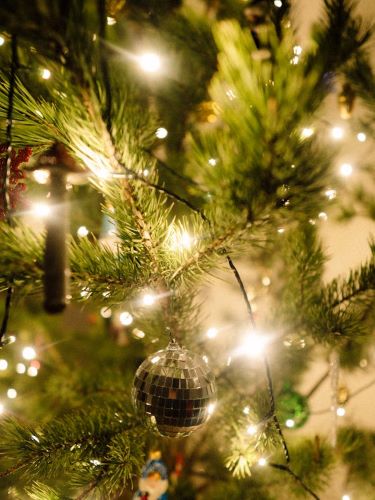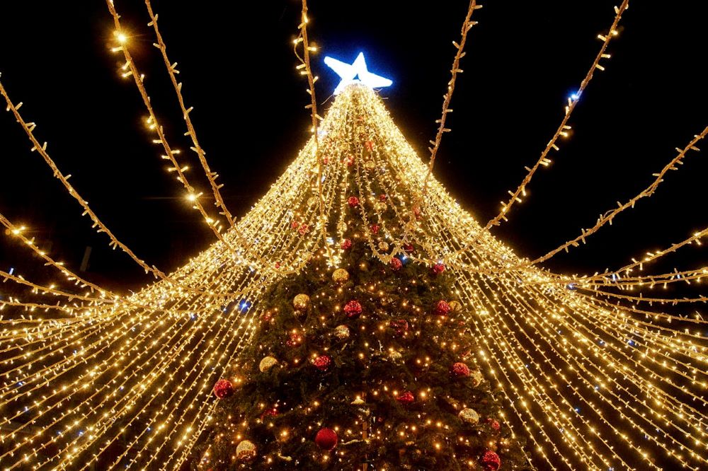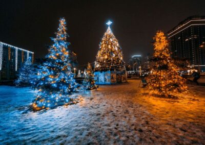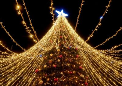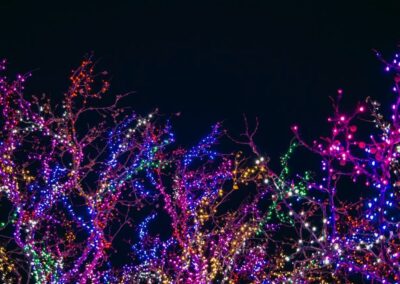 Large-scale outdoor trees with sparkling lights